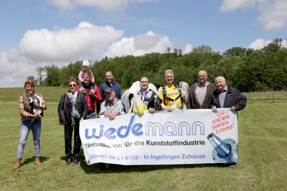 Mit dem Fallschirm trafen sie punktgenau das Landefeld in der Wiese neben dem Biergarten.