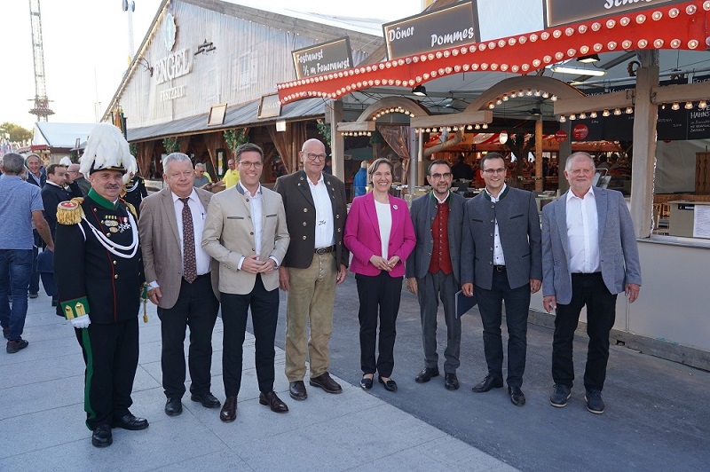 Klaus Holetschek, CSU-Fraktionsvorsitzender im Bayerischen Landtag, Manuel Hagel, Spitzenkandidat der CDU Baden-Württemberg, sowie die Landtagskandidatin Isabell Rathgeb und Dr. Tim Breitkreuz, Landtagskandidat im nahegelegenen Wahlkreis Hohenlohe beim politische Volksfestauftakt in Crailsheim